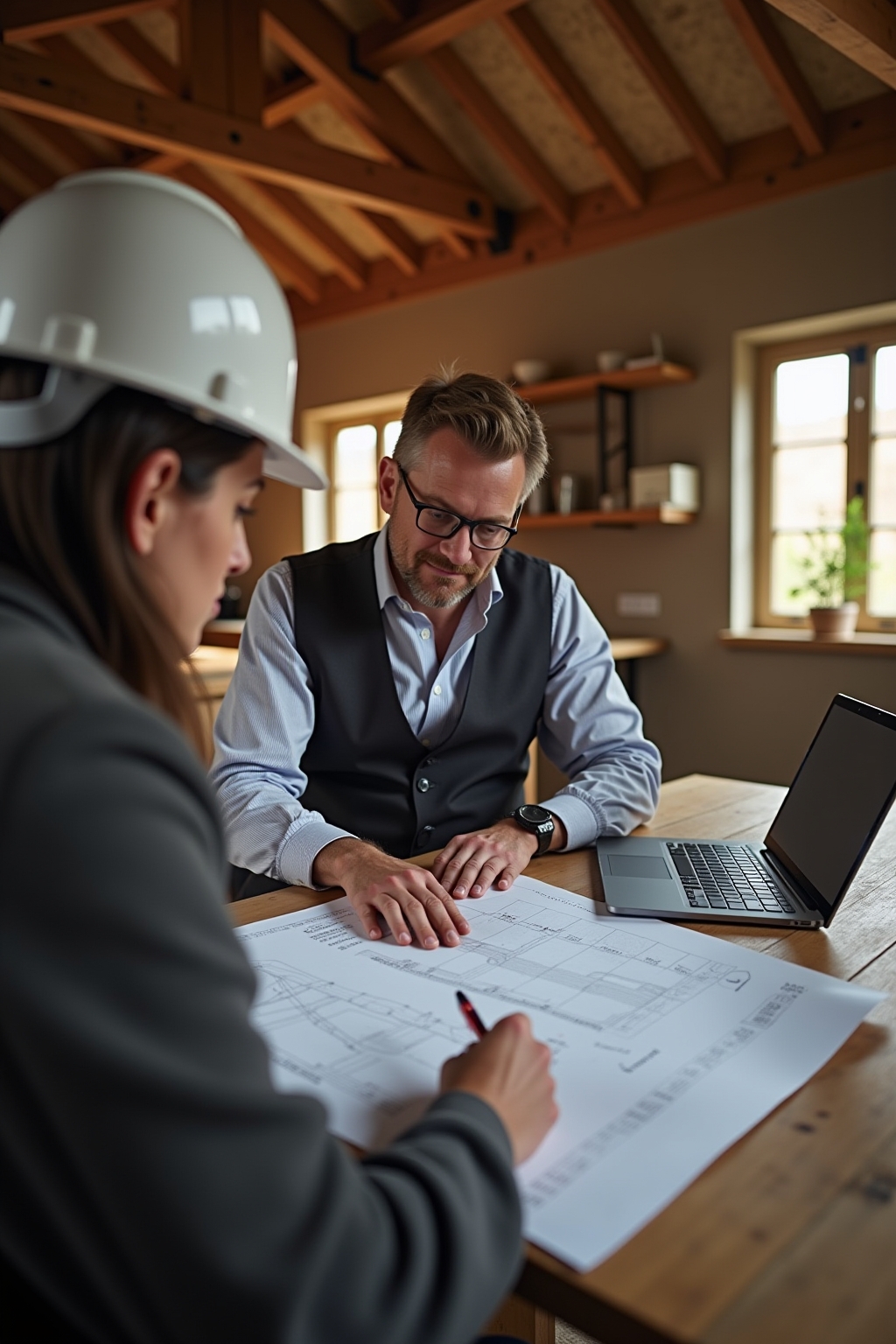 - Erhalt tragender historischer Elemente wie Holzbalken und Mauerwerk