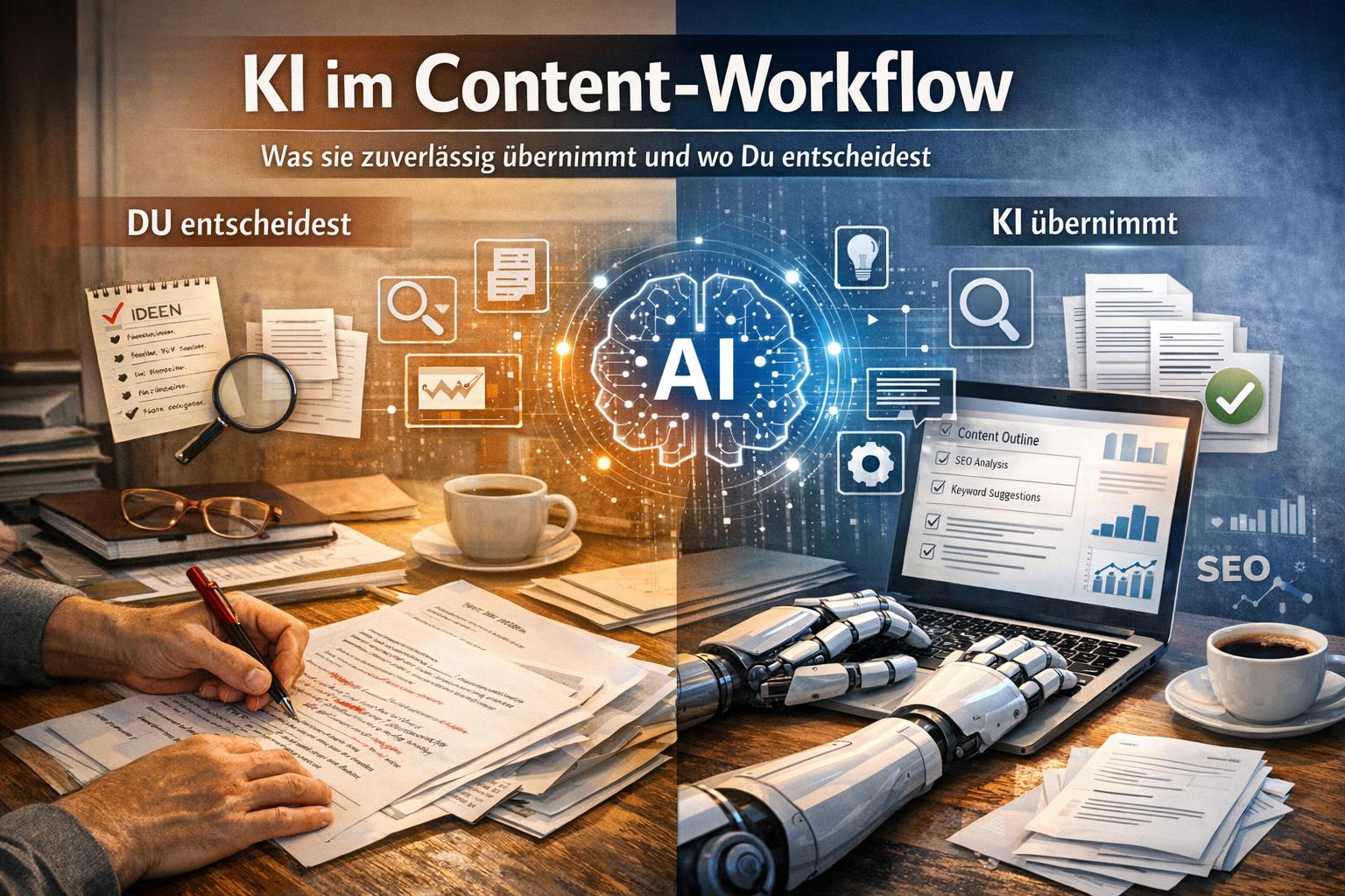 KI im Content-Workflow: Was sie zuverlässig übernimmt – und was du behalten musst